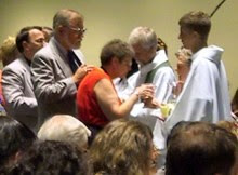 A imagem ao lado, colhida na Internet, teria sido flagrada na Jornada Mundial da Juventude, em Toronto/2002. Se a cena é verdadeira, está tudo errado: o sacerdote não veste os paramentos como estabelecido (a casula, pelo menos, não está presente); o chapéu; os óculos escuros... o altar improvisado (um caixote!); gente de costas e indiferente ao que se passa... Nada, enfim, que lembre, nem de longe, a dignidade e a santidade do mistério que se celebra!